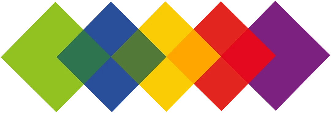 Der strategische Kern ist die Transparenz. Das visuelle Fundament bilden die fünf farbigen Quadrate der Mitgliedsgemeinden. Durch eine 50%ige Transparenz in der Überlagerung entstehen neue Farbräume. Eine grafische Metapher für das Zusammenrücken und die ökumenische Offenheit.