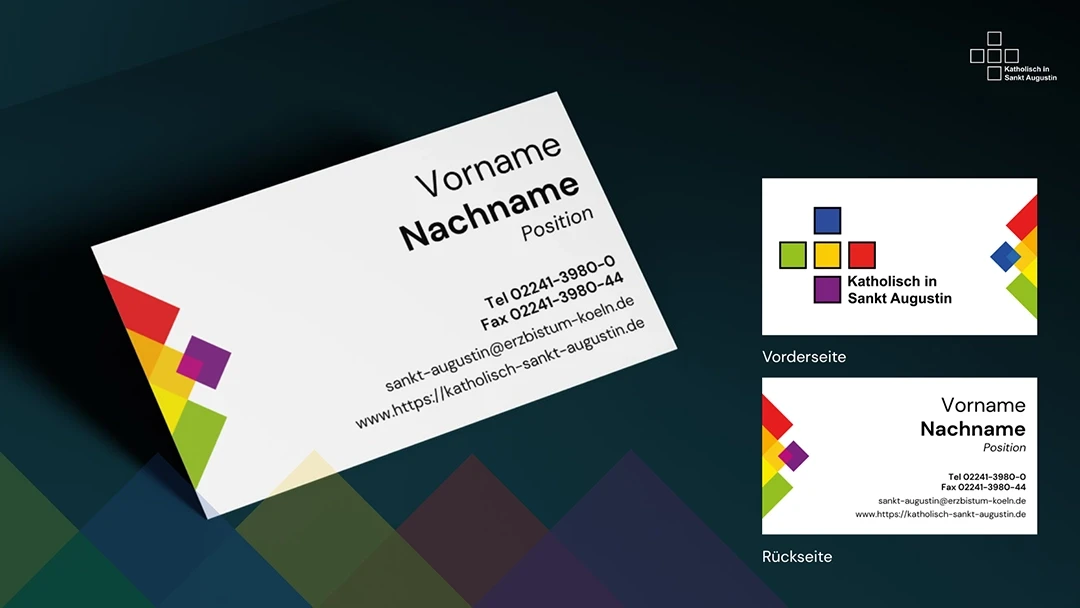 Die Kirchengemeinschaft Sankt Augustin aus Köln besteht aus 5 Gemeinden mit jeweils eigenem Charakter. Die Aufgabe war es, ein visuelles Dach zu schaffen, das diese Individualität bewahrt und gleichzeitig die unauflösbare Einheit als Seelsorgebereich demonstriert. Entstanden ist ein lebendiges Gestaltungssystem auf einen schon bestehenden Logos, das von der Visitenkarte bis zur großformatigen Plakatserie eine neue, einladende Sprache spricht.